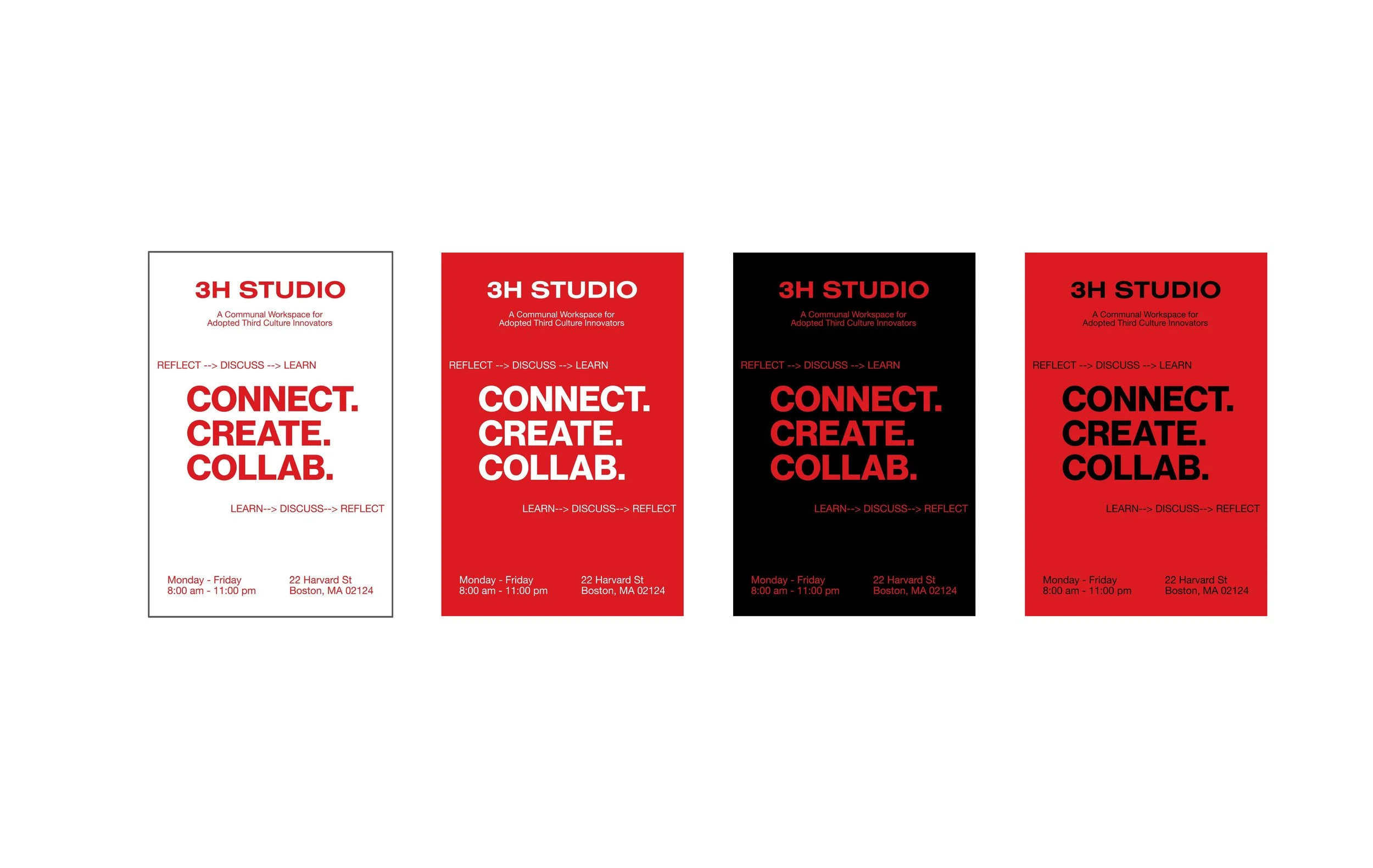 The final designs for 3H STUDIO include a poster series campaign to promote the brand’s visual identity and 3-C’s adoptee-run magazine, which helps adopted TCKs connect with their intersectional identities through educational content and adoptee interviews.