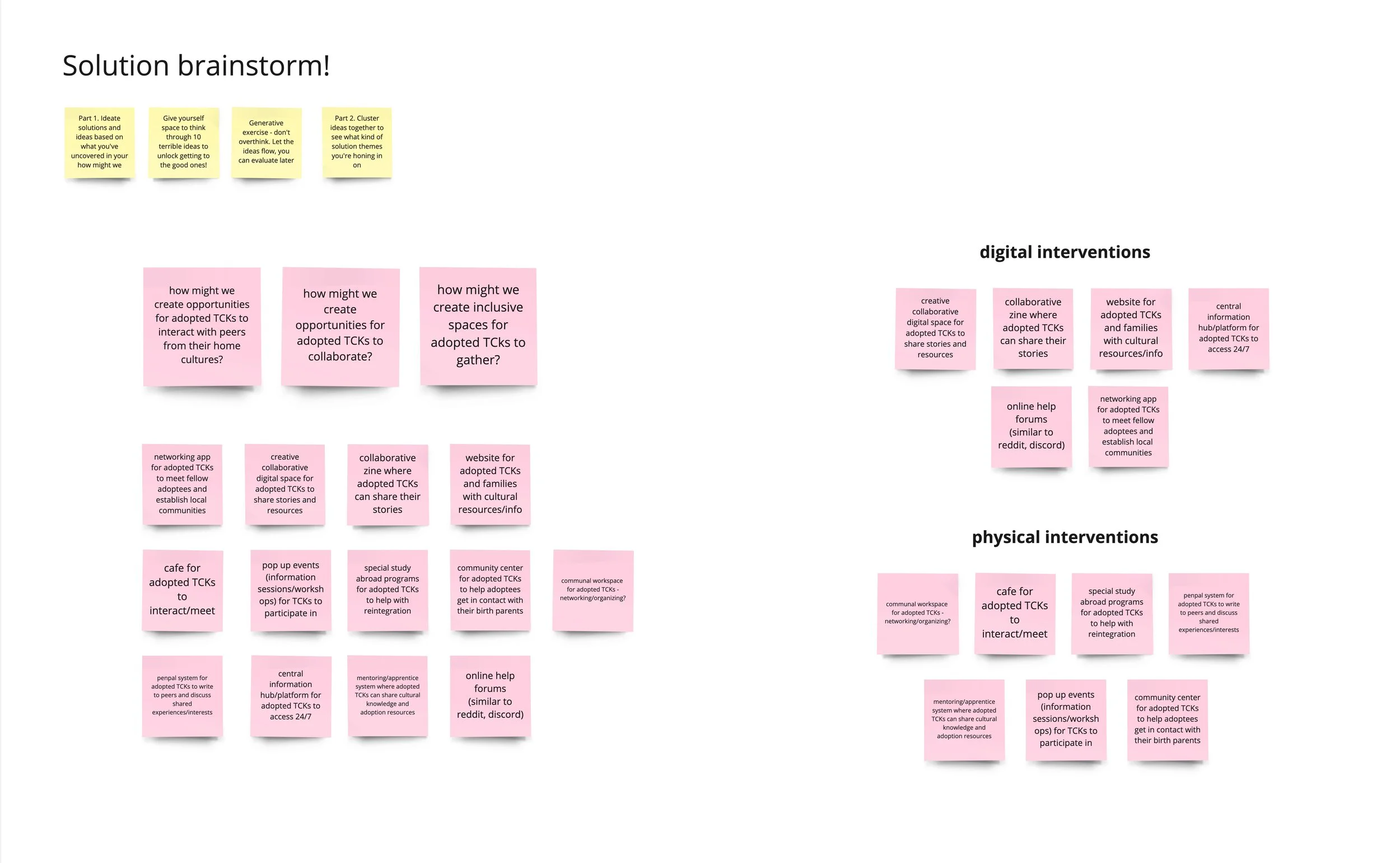I started by asking: How might we create opportunities for adopted TCKs to interact with peers from their home cultures?